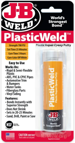 | A PlasticWeld egy kézzel összegyúrható, gyorsan kötõ epoxy gitt, amely tartós kötést képez a legtöbb fõbb mûanyag típuson. Keverés után egy polimer vegyületet képez, amely formázható, vagy szinte bármilyen mûanyagból készült felület felépítésére és javítására használható. Kikeményedés után fûrészelhetõ, fúrható, faragható, csiszolható, és festhetõ. Nem tapad a polietilénhez és a polipropilénhez és néhány más mûanyaghoz. Elõszõr teszteljük a tapadást. Ez a kiszerelés 57 g. anyagot tartalmaz. Típusszáma: 8237. |
